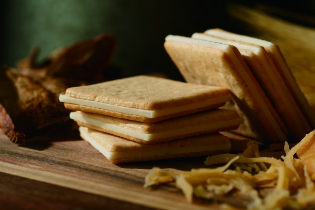 新鮮な国産牛乳とフランス産ゲランドの塩を使った生地に、カマンベールチーズのチョコプレートをサンドしたクッキーです。