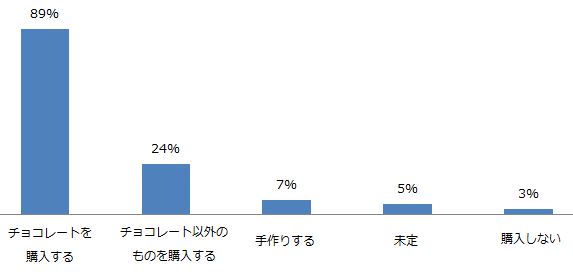★今年バレンタインチョコレートを購入しますか?「購入する」89%、「チョコレート以外のものを贈る」24%、「手作りする」7%、「購入しない」3%、「未定」5% (※複数回答)